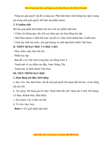 II. THIẾT BỊ DẠY HỌC VÀ HỌC LIỆU