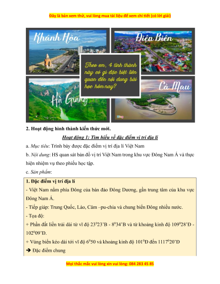 a. Mục tiêu: Trình bày được đặc điểm vị trí địa lí Việt Nam