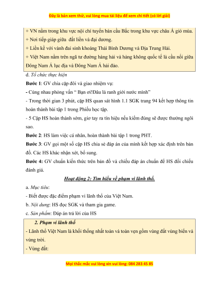 điểm vị trí địa lí, phạm vi lãnh thổ Việt Nam.