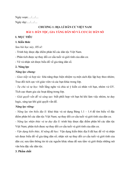 BÀI 1: DÂN TỘC, GIA TĂNG DÂN SỐ VÀ CƠ CẤU DÂN SỐ I. MỤC TIÊU 1. Kiến thức