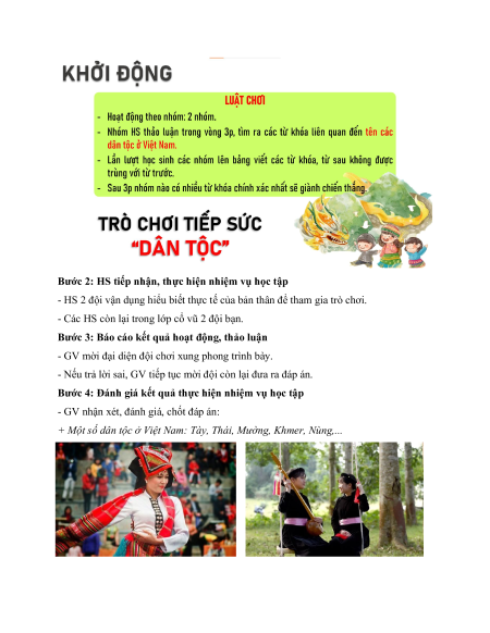 b. Nội dung: GV tổ chức cho HS chơi trò chơi Tiếp sức. HS kể tên một số dân tộc ở Việt Nam.