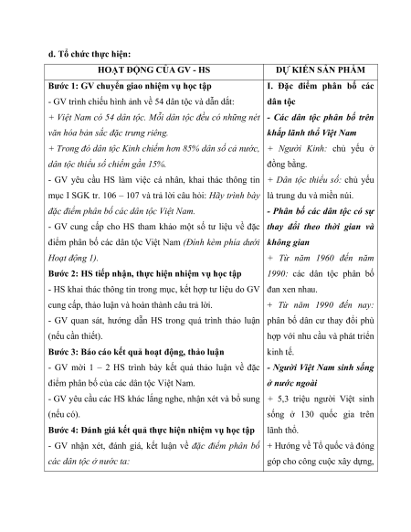 c. Sản phẩm: Câu trả lời của HS về đặc điểm phân bố các dân tộc Việt Nam.