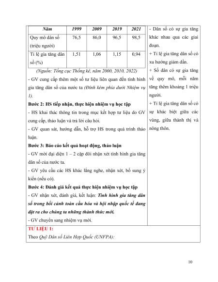 - Bảng số liệu, thông tin, tư liệu do GV sưu tầm về nội dung bài học Dân cư và dân