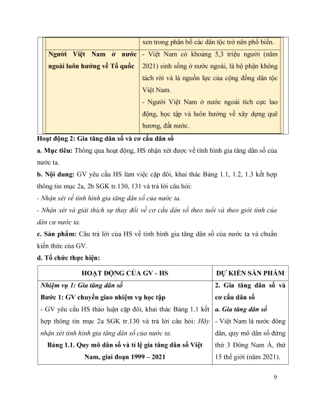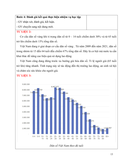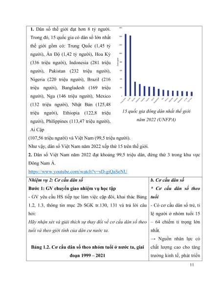 Việt Nam; phân tích được sự thay đổi cơ cấu tuổi và giới tính của dân cư.