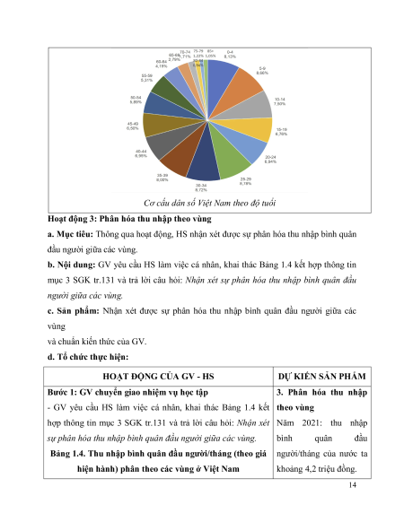 xét được biểu đồ về gia tăng dân số; nhận xét được sự phân hóa thu nhập theo vùng từ 1