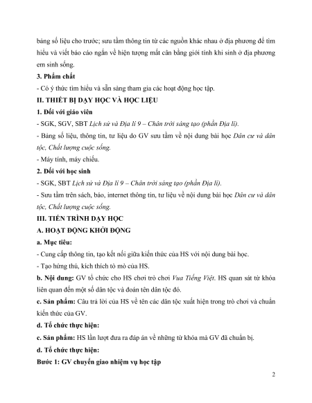 - Máy tính, máy chiếu. 2. Đối với học sinh