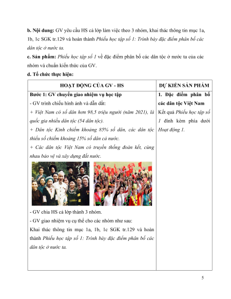a. Mục tiêu: Thông qua hoạt động, HS trình bày được đặc điểm phân bố các dân tộc ở nước ta. 4