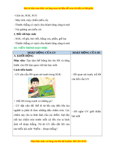 Đây là bản xem th , vu ử i lòng mua tài li u ệ đ xe ể m chi ti t (c ế ó l i ờ gi i ả ) - Giáo án, SGK, SGV. - Máy tính, máy chi u ế (n u có) ế . - Thư c t ớ h ng ẳ có v ch ạ chia thành t ng xăng- ừ ti-mét - Vài gư ng s ơ en (n u có) ế 2. Đ i ố v i ớ h c s ọ inh - SGK, v ghi ở , bút vi t ế , b ng con, ả ph n, gi ấ l ẻ au - Thư c t ớ h ng ẳ có v ch ạ chia thành t ng xăng- ừ ti-mét III. TI N Ế TRÌNH D Y Ạ H C Ọ HOẠT Đ N Ộ G C A Ủ GV HOẠT Đ N Ộ G C A Ủ HS A. KH I Ở Đ N Ộ G Mục tiêu: T o ạ tâm thế h ng ứ thú cho HS và t ng ừ bư c ớ cho HS làm quen v i ớ bài h c ọ m i ớ . Cách ti n hà ế nh: