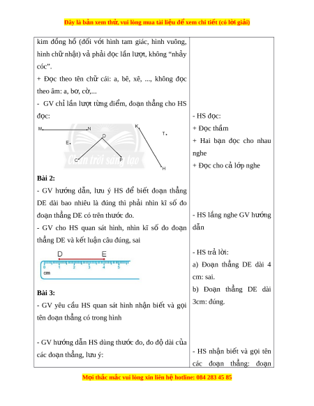 - GV h ng d n, l u ý HS đ bi t đo n th ngướ ẫ ư ể ế ạ ẳ