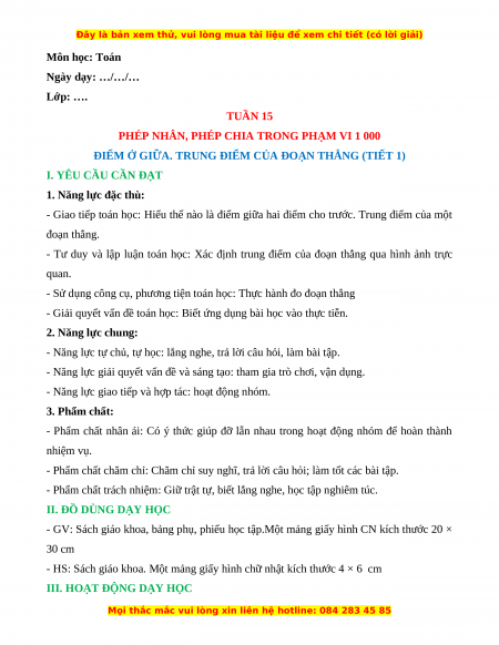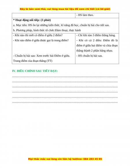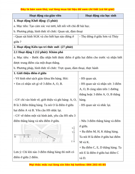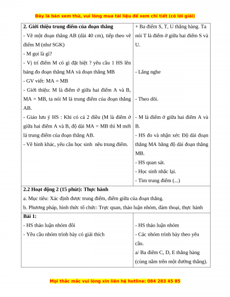 - Giao tiếp toán học: Hiểu thế nào là điểm giữa hai điểm cho trước. Trung điểm của một đoạn thẳng.