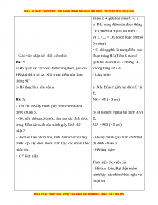 thẳng MA bằng độ dài đoạn thẳng MB. - HS quan sát. - Học sinh nhắc lại. - Tìm trung điểm (...)