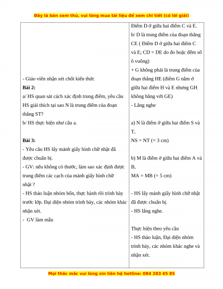 a/ HS quan sát cách xác định trung điểm, yêu cầu không bằng với GE)