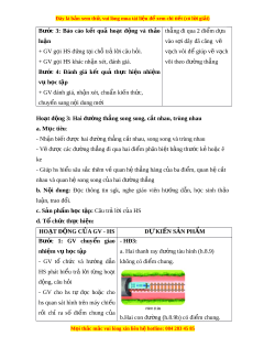 - HĐ1: Ta thấy chỉ có th ể - Yêu cầu hs đ c và t ọ r l ả i ờ các câu h i ỏ sgk vẽ đư c đúng m ợ t ộ đư ng ờ Bư c ớ 2: HS th c hi ự n nhi ệ m ệ v h ụ c t ọ p ậ th ng đi ẳ qua hai đi m ể phân + HS ti p ế nh n nhi ậ m ệ v , t ụ rao đ i ổ , th o ả lu n. ậ bi t ệ A,B. + GV quan sát HS ho t ạ đ ng, ộ hỗ trợ khi HS - Câu h i ỏ 2: Trong hình 8.4 cần có 3 đư ng t ờ h ng ẳ , đó là Bư c ớ 3: Báo cáo k t ế qu ả ho t ạ đ ng ộ và th o ả nh ng đ ữ ư ng t ờ h ng: ẳ AB, M i ọ thắc m c