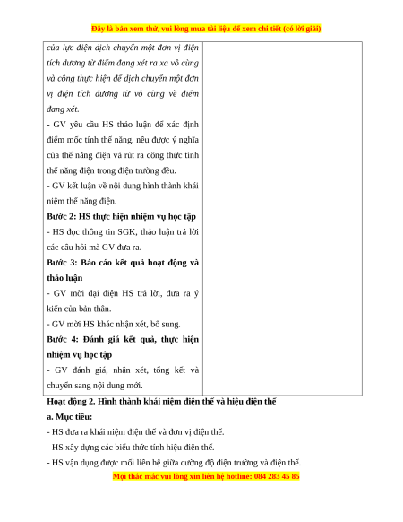 - HS đưa ra khái niệm điện thế và đơn vị điện thế.