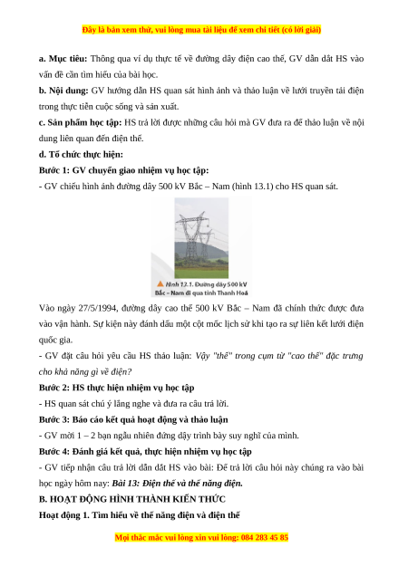 - GV chiếu hình ảnh đường dây 500 kV Bắc – Nam (hình 13.1) cho HS quan sát.
