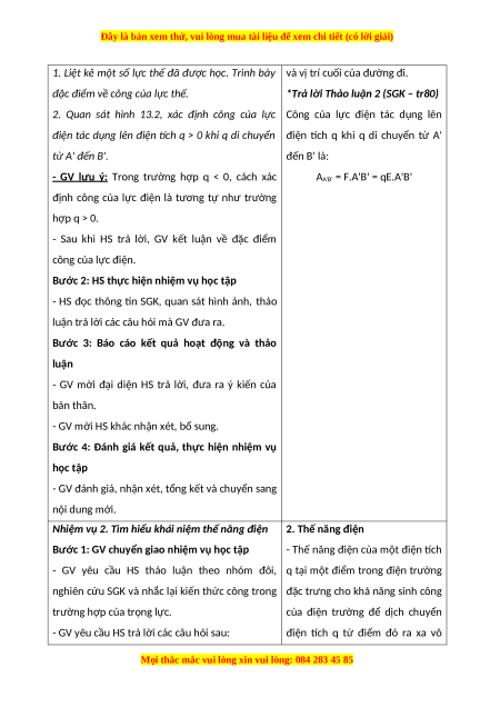 Giáo án Điện thế và thế năng điện Vật lí 11 Chân trời sáng tạo
