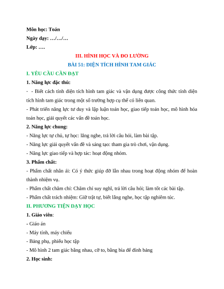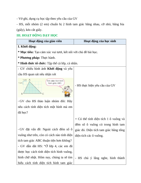 Giáo án Diện tích hình tam giác Toán lớp 5 Cánh diều
