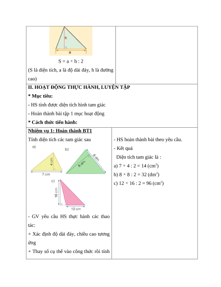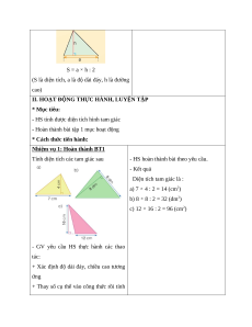 - - Biết cách tính diện tích hình tam giác và vận dụng được công thức tính diện