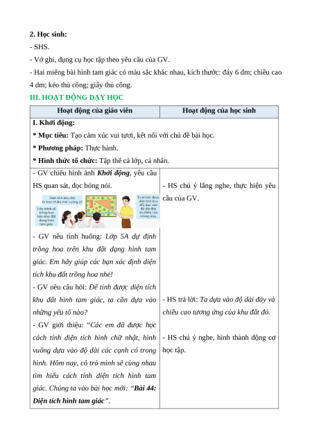 BÀI 44. DIỆN TÍCH HÌNH TAM GIÁC (2 TIẾT)