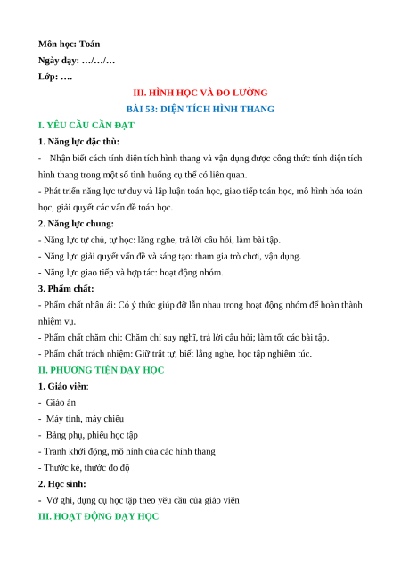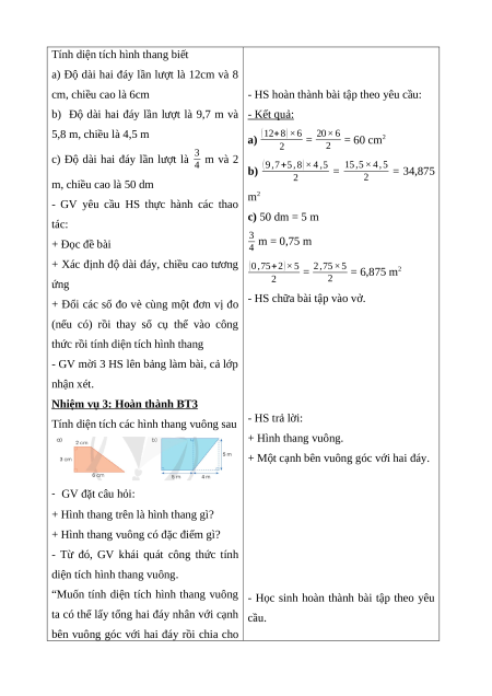 Giáo án Diện tích hình thang Toán lớp 5 Cánh diều