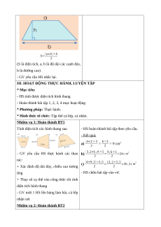 - HS biết cách tính diện tích hình thang. * Cách tiến hành: