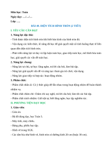Giáo án Diện tích hình tròn Toán lớp 5 Chân trời sáng tạo
