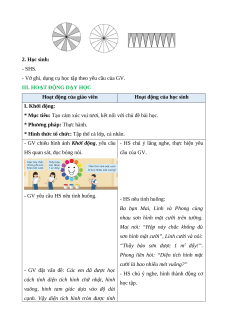 - Năng lực giao tiếp và hợp tác: hoạt động nhóm. 3. Phẩm chất: