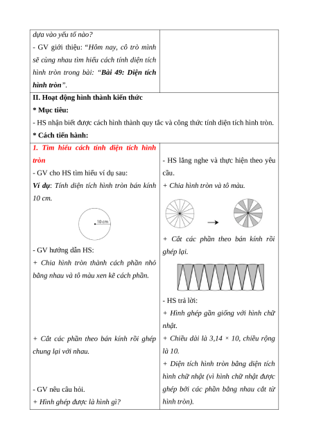 BÀI 49. DIỆN TÍCH HÌNH TRÒN (2 TIẾT)