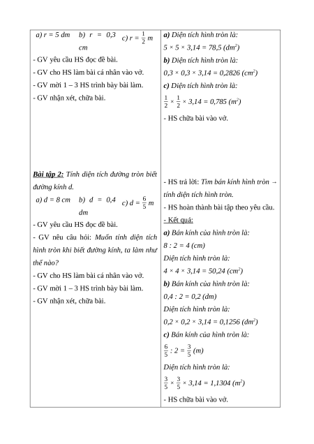 - Tính được diện tích hình tròn khi biết bán kính của hình tròn đó.