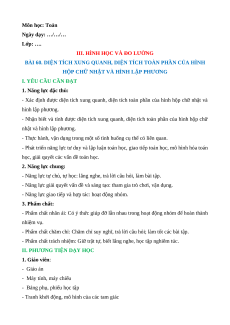 BÀI 60. DIỆN TÍCH XUNG QUANH, DIỆN TÍCH TOÀN PHẦN CỦA HÌNH