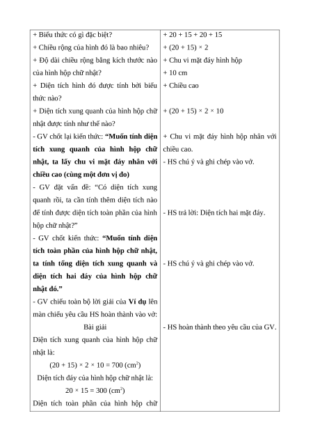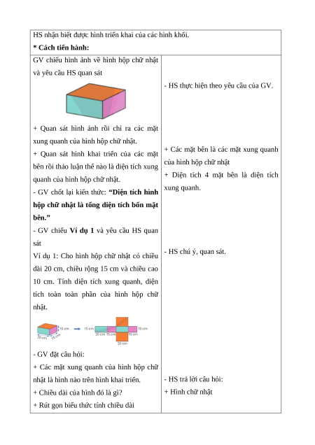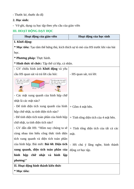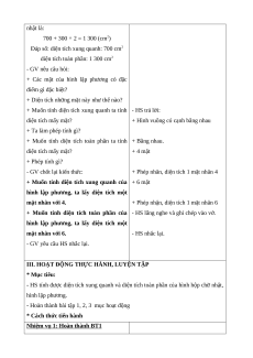 Giáo án Diện tích xung quanh, diện tích toàn phần của hình hộp chữ nhật Toán lớp 5 Cánh diều