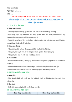 - Vận dụng được việc tính diện tích xung quanh, diện tích toàn phần của hình lập
