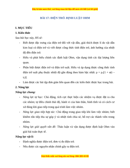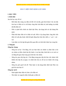 BÀI 17: ĐIỆN TRỞ. ĐỊNH LUẬT OHM I. MỤC TIÊU 1. Kiến thức