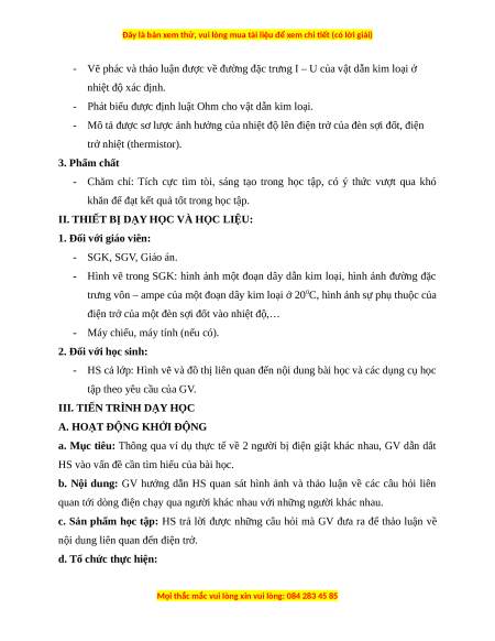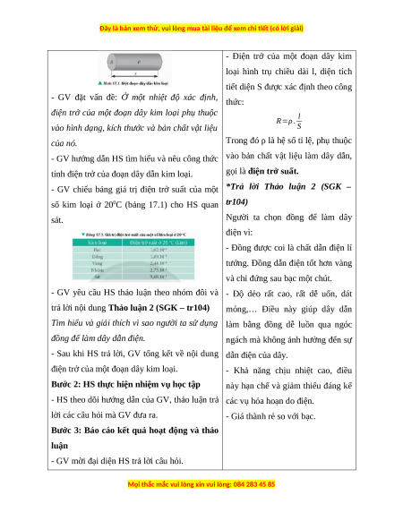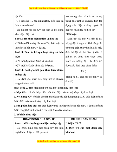Bước 3: Báo cáo kết quả hoạt động và thảo điện thế đặt vào hai đầu vật dẫn có luận
