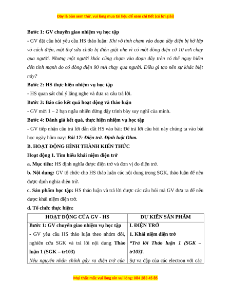 Bước 1: GV chuyển giao nhiệm vụ học tập I. ĐIỆN TRỞ