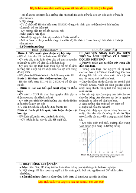 Đây là bản xem th , vu ử i lòng mua tài li u ệ đ xe ể m chi ti t ế (có l i ờ gi i ả ) - Mô tả đư c ợ s ơ lư c ợ nh ả hư ng ở c a ủ nhi t ệ đ ộ lên đi n ệ tr ở c a ủ đèn s i ợ đ t ố , đi n ệ tr ở nhi t ệ (thermistor). b.N i ộ dung: -GV tổ ch c