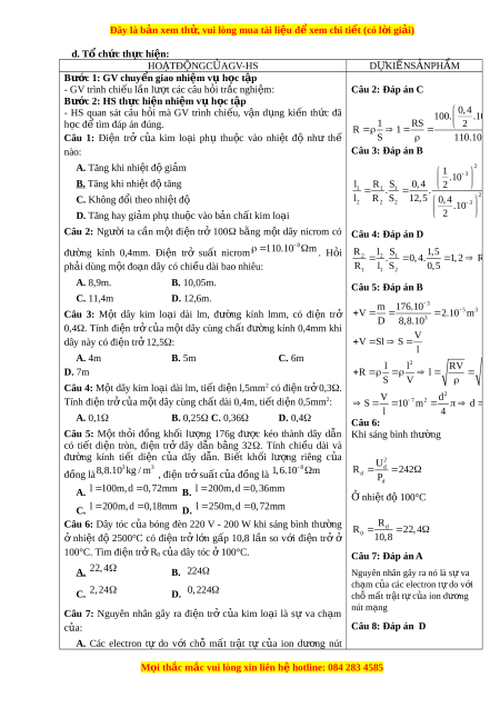 ợ nguyên nhân gây ra đi n ệ tr c ở ủa vật dẫn. - Mô tả được sơ lư c ợ nh ả hư ng ở c a ủ nhi t ệ đ ộ lên đi n ệ tr ở c a ủ đèn s i ợ đ t ố , đi n ệ tr ở nhi t ệ (thermistor). d.T c ổ h c ứ ho t ạ đ n ộ g: HOẠTĐ N Ộ GC A Ủ GV-HS D K Ự IẾNSẢNPH M Ẩ .Bư c ớ 1: GV chuy n ể giao nhi m v ệ h ụ c ọ t p ậ