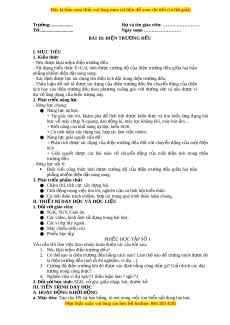 Ngày soạn …………………… BÀI 18: ĐI N Ệ TRƯỜNG Đ U Ề I. MỤC TIÊU 1. Ki n ế th c ứ - Nêu đư c ợ khái ni m ệ đi n t ệ rư ng ờ đ u ề - Sử d ng ụ bi u ể th c ứ E=U/d, tính đư c ợ cư ng ờ độ c a ủ đi n ệ trư ng ờ đ u ề gi a ữ hai b n ả phẳng nhiễm đi n đ ệ ặt song song. - Xác đ nh đ ị ược l c ự tác d ng l ụ ên đi n t ệ ích đặt trong đi n t ệ rư ng đ ờ u. ề