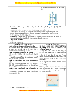 ể SGK thông qua bài toán cụ thể để đ a ư ra tác d ng c ụ a ủ đi n t ệ rư ng ờ đ u đ ề i ố v i ớ chuy n đ ể ng c ộ ủa một đi n t ệ ích. c. S n ả ph m h ẩ c ọ t p ậ : - Viết d. T c ổ h c ứ ho t đ ạ n ộ g: HO T Ạ ĐỘNG C A Ủ GV – HS DỰ KI N Ế S N Ả PH M Ẩ Bư c ớ 1: GV chuy n ể giao nhi m v ệ h ụ c ọ t p ậ II. TÁC D N Ụ G C A Ủ ĐI N Ệ TRƯ N Ờ G - GV cho HS tự đ c ọ SGK ph n ầ III, ho t ạ đ ng ộ và ví Đ U Ề ĐỐI V I Ớ CHUY N Ể Đ N Ộ G C A Ủ dụ hư ng ớ d n ẫ HS th o ả lu n ậ để từ đó h c ọ sinh rút M T Ộ ĐI N Ệ TÍCH