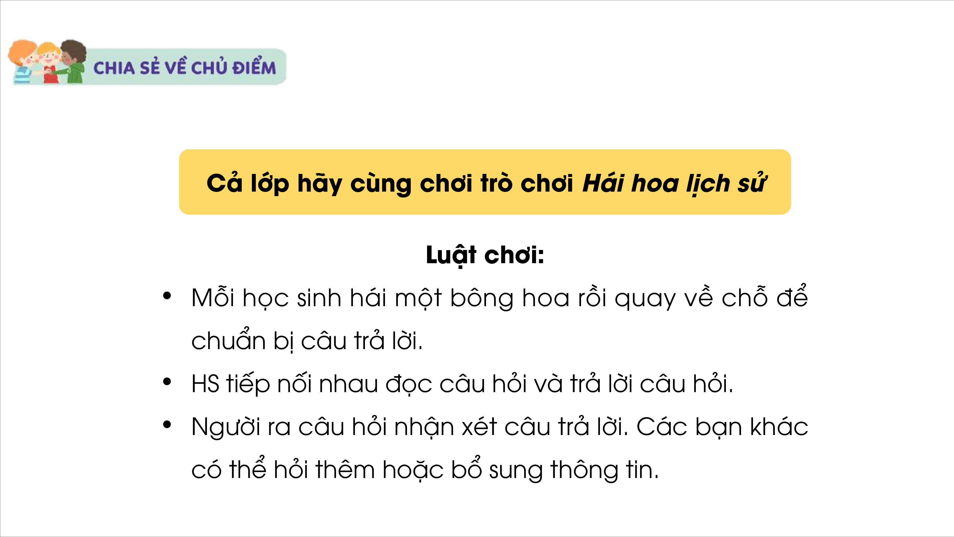 Cả lớp hãy cùng chơi trò chơi Hái hoa lịch sử Luật chơi: