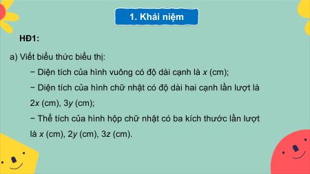 vuông đó là: �2 + �2 + 1 �� cm2 . Biểu thức đại số 2