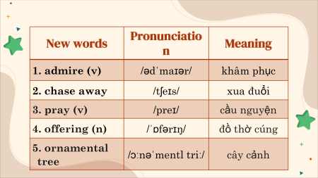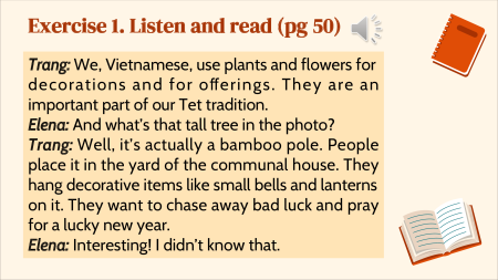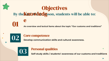 01 An overview and lexical items about the topic “Our customs and traditions” Core competence
