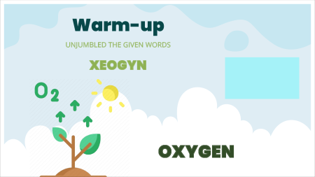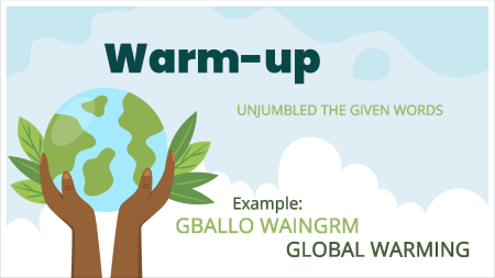 correctly pronounce words that contain the sounds: /bl/ and /kl/ Warm-up UNJUMBLED THE GIVEN WORDS Example: GBALLO WAINGRM GLOBAL WARMING Warm-up UNJUMBLED THE GIVEN WORDS XEOGYN OXYGEN