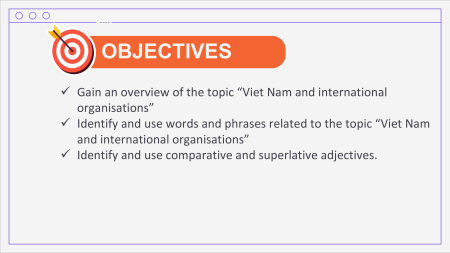 ü Gain an overview of the topic “Viet Nam and international organisations”