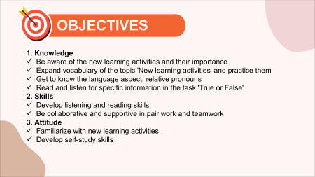 ü Expand vocabulary of the topic 'New learning activities' and practice them