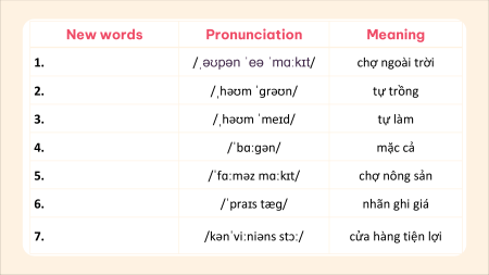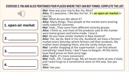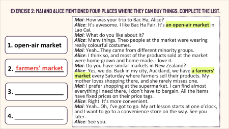 - Write as many places as possible where they usual y shop. For example: Vin Mart, ….