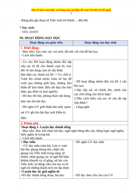 - Bảng phụ ghi đoạn từ Tiến Anh trở thành… đến hết. * Học sinh: - SHS, ĐDHT