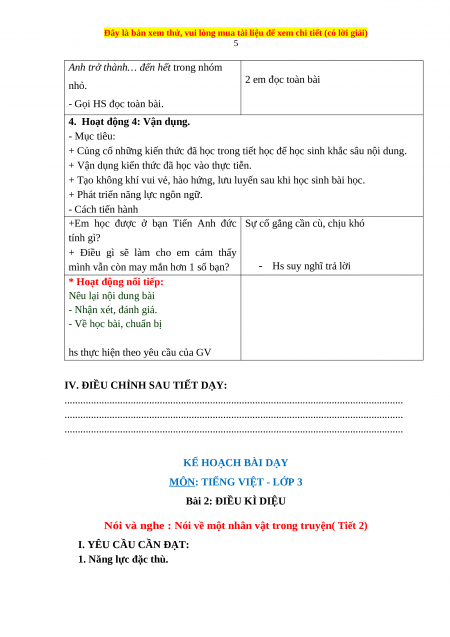 KẾ HOẠCH BÀI DẠY