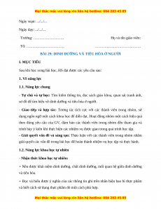 - Tìm hiểu tự nhiên: Thực hiện được một dự án liên quan đến tiêu hóa và dĩnh dưỡng.