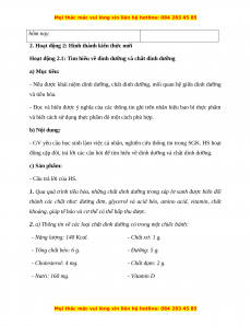 Hoạt động 2.1: Tìm hiểu về dinh dưỡng và chất dinh dưỡng a) Mục tiêu: